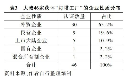 从表3企业性质看,中国大陆46家获评“灯塔工厂”中的外资企业占65.2%,这其中既有“灯塔工厂”冠名认证的宣传工作在外资企业较为普及的原因,但更主要的是外资企业自从上世纪末以来大力施行了精益生产、六西格玛质量管理、设备综合效率、业务流程再造等一系列综合运营模式改善,为推行制造业数字化转型奠定了基础。